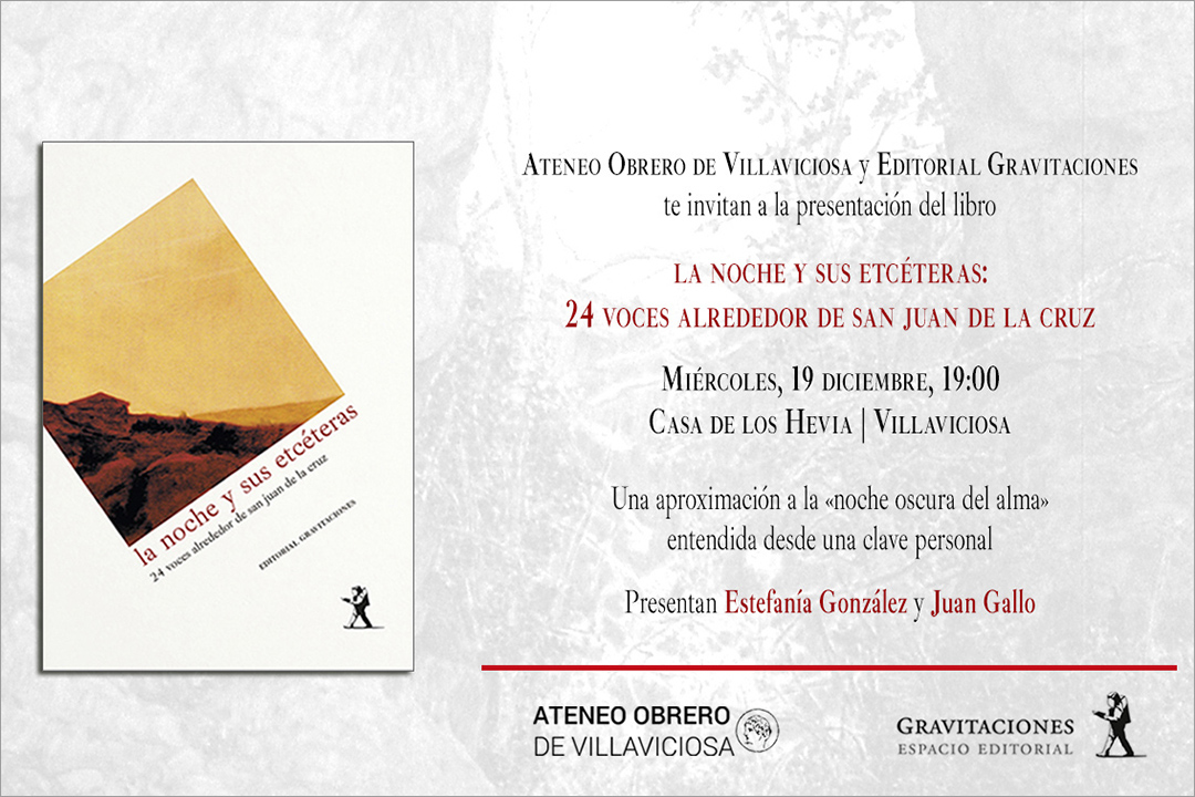 Presentamos La noche y sus etcéteras en el Ateneo de Villaviciosa (Asturias), esta vez con Estefanía González y con un acento especial en aspectos biográficos de san Juan de la Cruz.